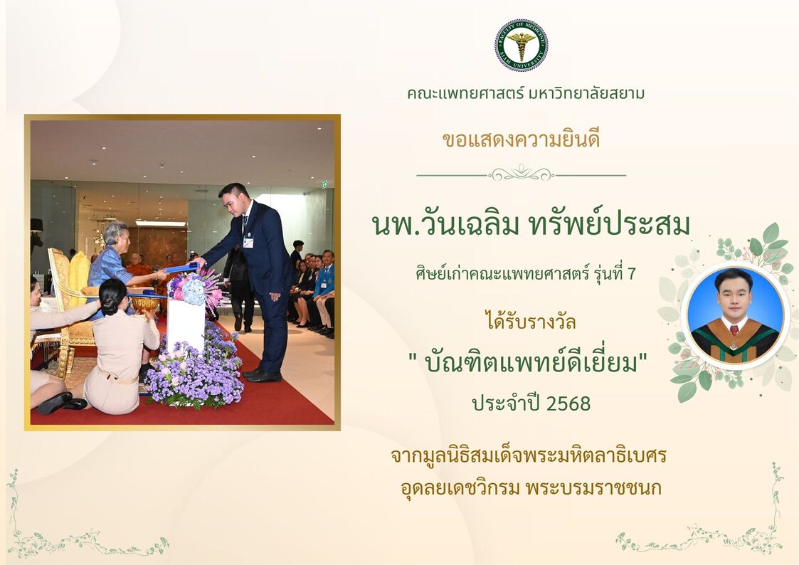 คณะแพทยศาสตร์ มหาวิทยาลัยสยาม > faculty-event > ขอแสดงความยินดีกับพี่หมอวันเฉลิม